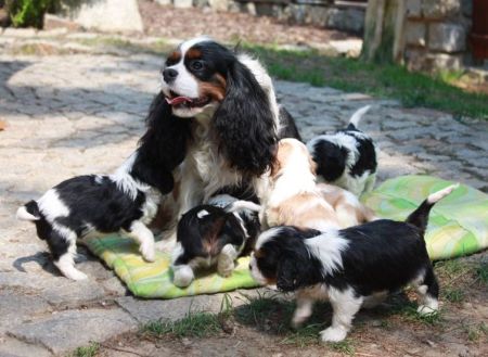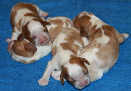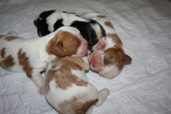 (3 dziewczynki blenheim i 1 tricolor oraz 1 chłopiec tricolor)