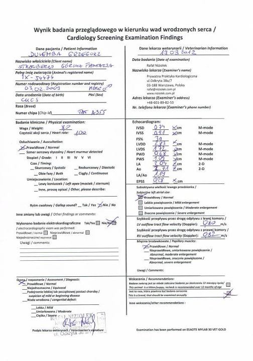 Badania wykonała lek. wet. Anna Olejniczak-Pytel
